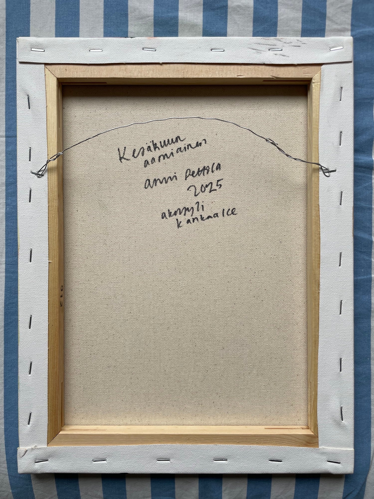 Teos on maalattu akryylimaaleilla kankaalle. Maalaus jatkuu reunojen yli eikä se tarvitse erillistä kehystä. Jos teoksen ostaja haluaa kehystää teoksen, annan mielelläni kehystysideoita.